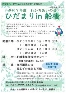 わかちあいの会ひだまりを船橋市と共催で開催いたします。
