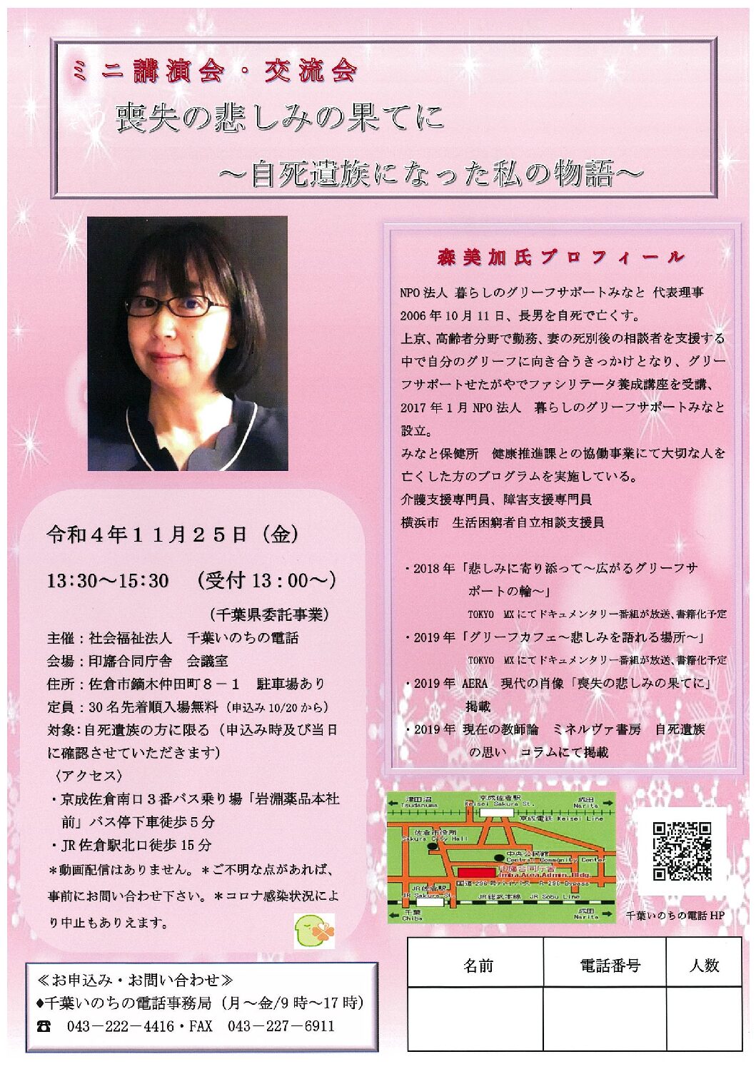 千葉県委託事業 ミニ講演会・交流会 「喪失の悲しみの果てに」