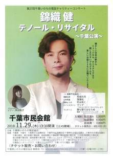 第27回 千葉いのちの電話 チャリティーコンサート コンサート 2018.08.162025.09.24 第27回 千葉いのちの電話 チャリティーコンサート(終了しました) 出演者:錦織 健 日 時:2018年11月29日(木) 開場12:45 開演13:30(終演予定15:30) 場 所:千葉市民会館 定員/料金:指定席A 5,000円 指定席B 4,000円 自由席 3,000円 チケット売り出し日 8月20日(月) お問い合せ/申込み 千葉いのちの電話協会 (月~金 9:00~17:00) TEL 043-222-4322 FAX 043-227-6911 メール kyoukai@chiba-inochi.jp