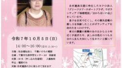 自死遺族の講演会・イベント 生き続けるということ 「大切な人と共に」 対象:自死遺族の方に限らせていただきます15時10分頃から講師を囲んでの交流会を予定しています 2024.09.04 自死遺族の講演会・イベント