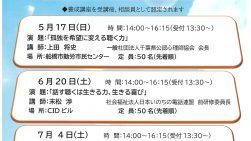 2026年度ボランティア募集説明会のご案内5月17日(日)「孤独を希望に変える聴く力」上田将史 氏 船橋市勤労市民センター6月20日(土)「話す聴くは生きる力、生きる喜び」末松渉 氏 CIDビル7月 4日(土)「人の話を聴ける人になる」佐藤...